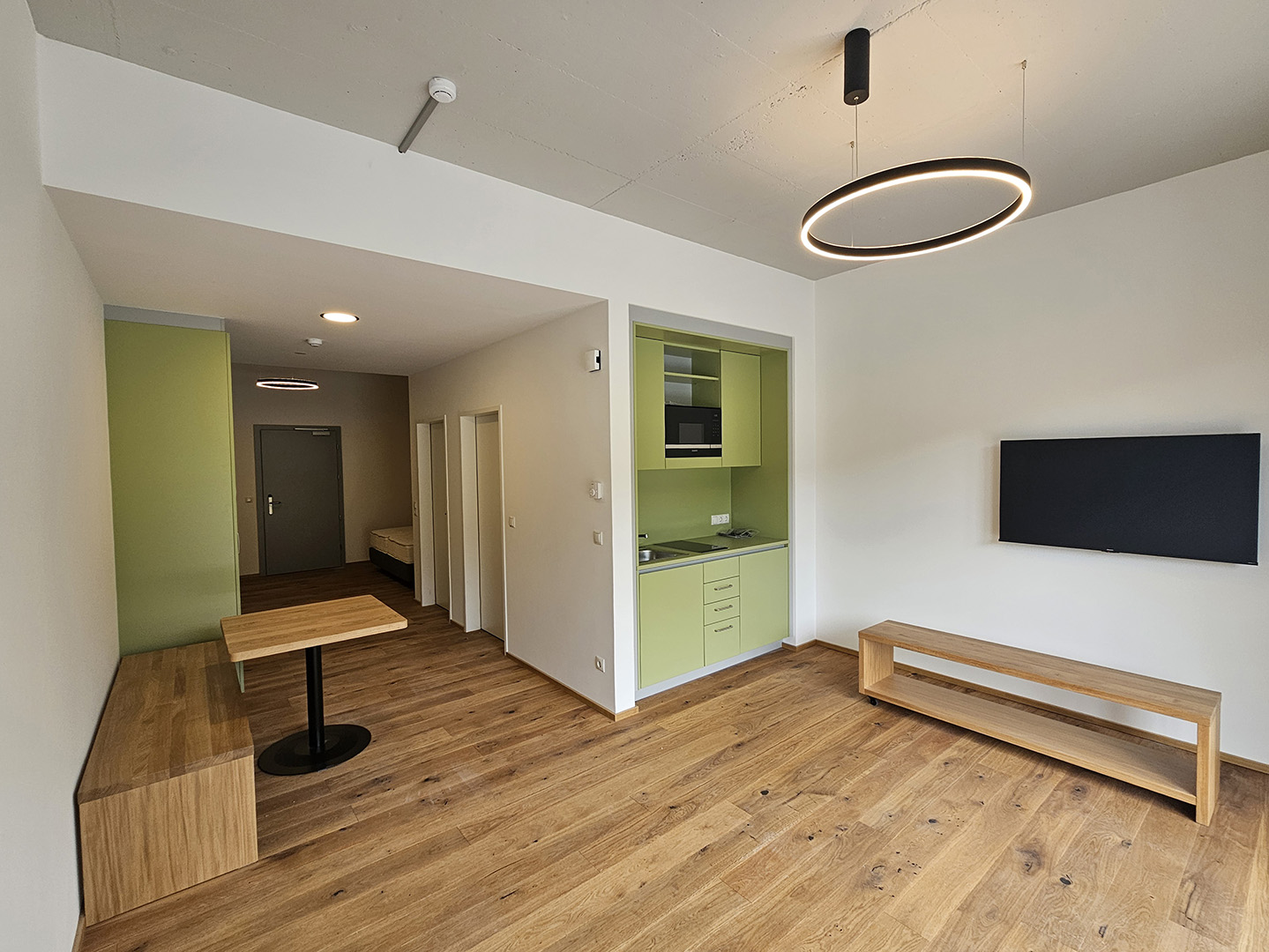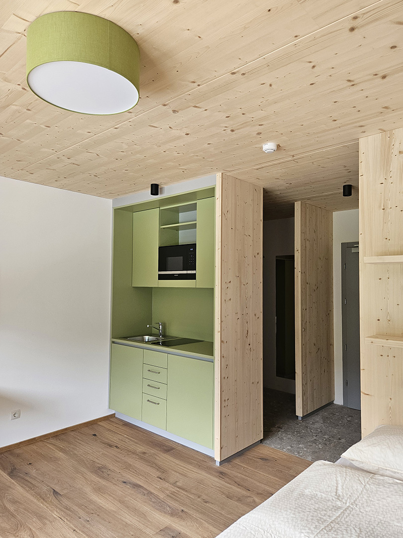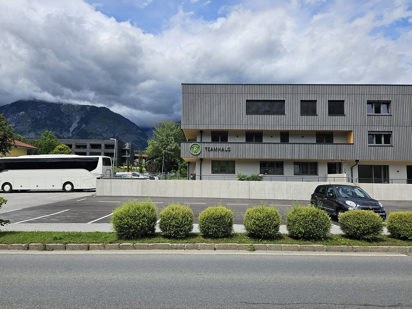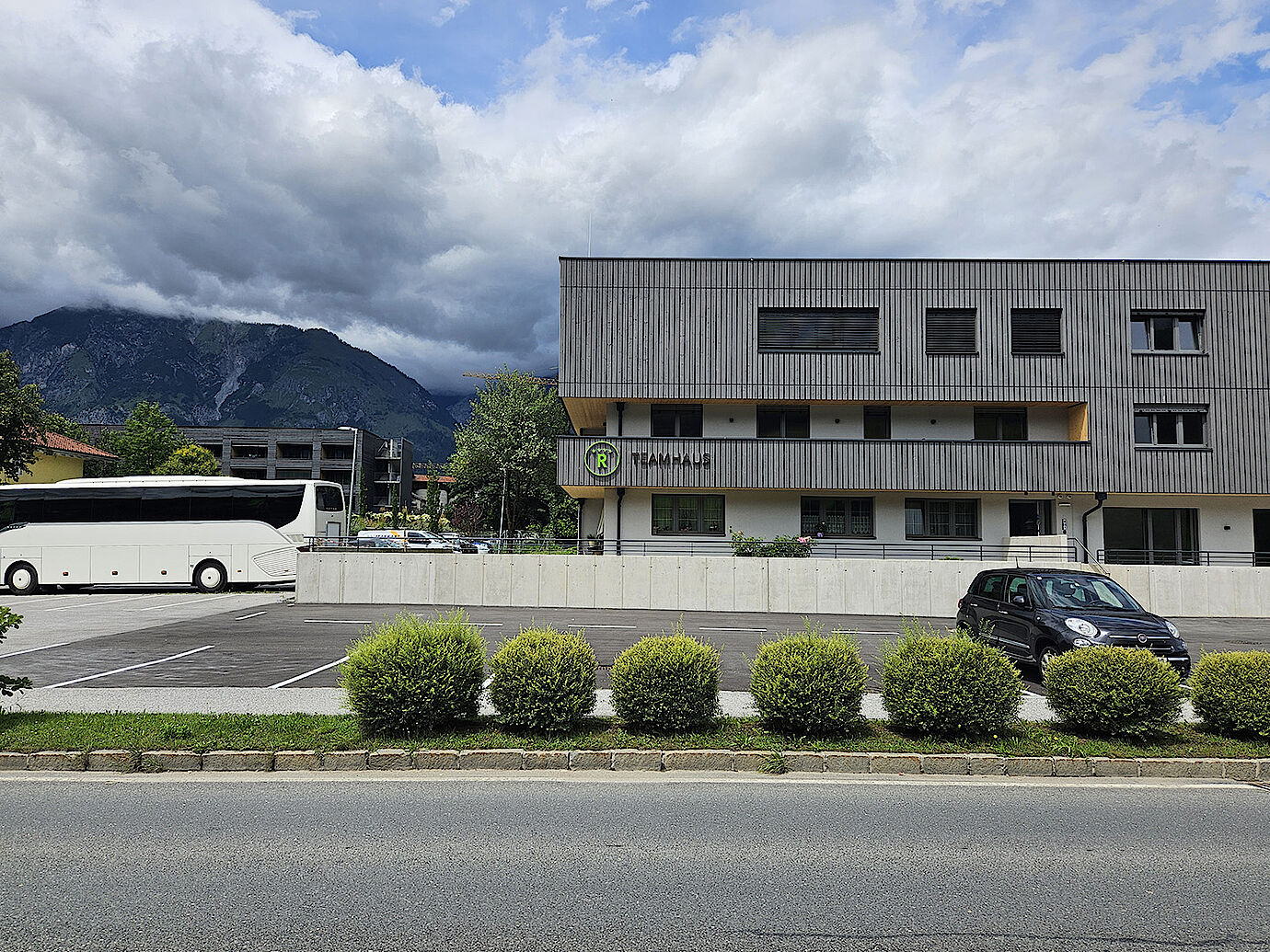 Das Teamhaus des Hotels Reschenhof in Mils ist eine Sanierung zweier Häuser die mit einem Holzbau aufgestockt und zusammengebaut wurde. Für die Mitarbeiter entstanden 20 Personalwohnungen welche sich zusammen mit 4 Privatwohnungen Erschließungszone teilen.