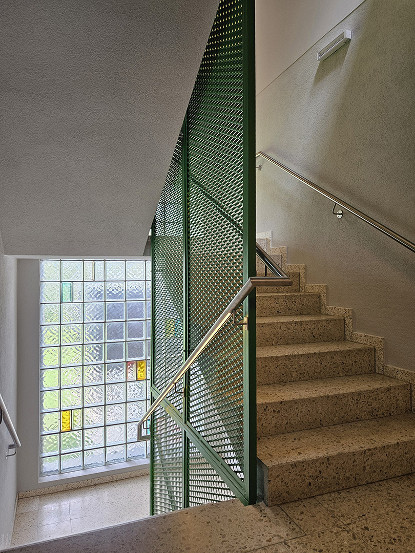 Davon wurden 16 Wohnungen mit je 26 m2 in den beiden Obergeschoßen über einer alten Autowerkstätte aufgestockt, die Werkhalle selber wurde mit 4 größeren loftartigen Wohnungen mit 40 m2 leicht erhöht mit Terrassen umgesetzt.